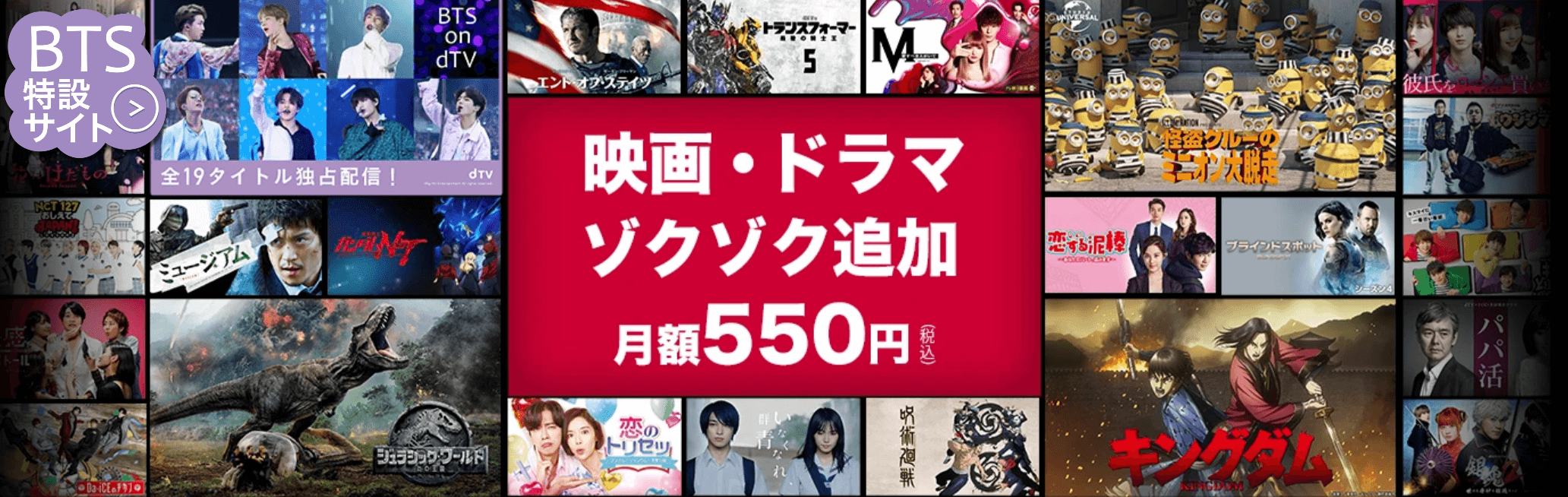 月額550円(税込)でアニメ・ドラマ・マンガなど12万作品が視聴できます。