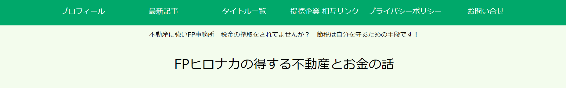 廣中さんが運営する「FPヒロナカの得する不動産とお金の話」には、お金に関するいくつものテーマの記事が掲載されています。