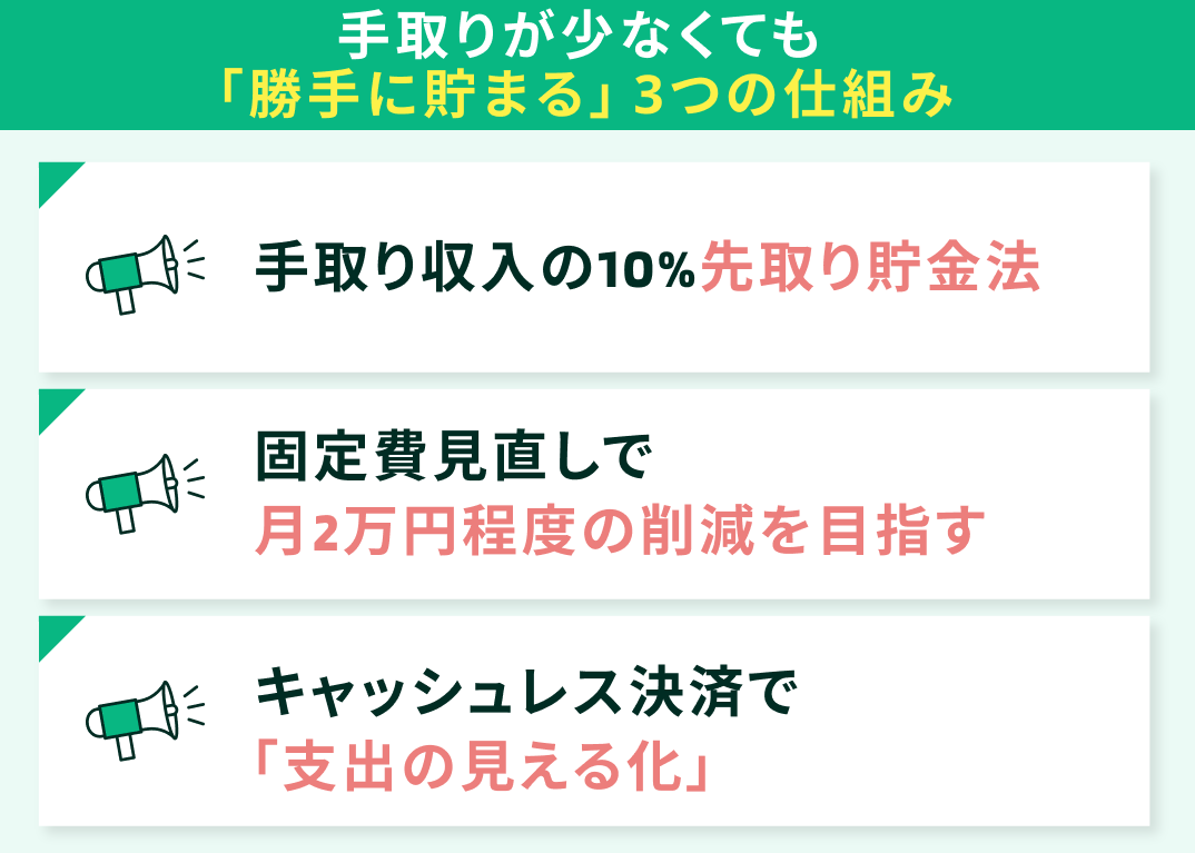 - 手取りが少なくても「勝手に貯まる」3つの仕組み